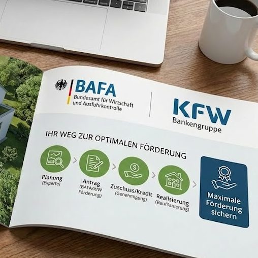 Der Sanierungsfahrplan (iSFP) – Ihr strategischer Vorteil: Wir erstellen Ihnen einen iSFP, der die Sanierung in sinnvollen Schritten plant. Das BAFA bezuschusst diesen Fahrplan bereits mit 50 % (max. 650 €). Er ist der Schlüssel zu 5 % Extraförderung bei allen späteren Maßnahmen.